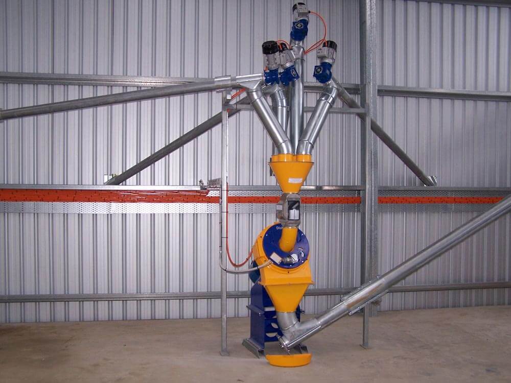 The compact CENTRAL SILO SYSTEMS/ SKIOLD mix and mill system enable improved productivity, reduced labour, and gives greater control on finished meal quality, costs and a desired mix to suit the nutritional requirements when needed. . The highly developed disc mill allows accurate and consistent meal particle size at the touch of a handle or can be automatically adjusted through the controller.