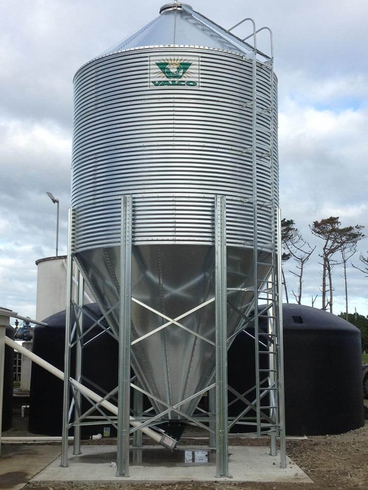We use North America manufactured VAL-CO Silos. They are the highest quality meal silo available in New Zealand. The Silo can be filled with product either by an Auger truck or by a blower truck with the addition of a pneumatic filling kit. With increasing concerns with safety regarding ladders on Silos we recommend the addition of a safety cage and supply these as standard to new Silos and we also offer a retro fitting service of new ladders, safety cages, pneumatic filling kits and remote opening roof lids to all existing Silos including different makes and models.